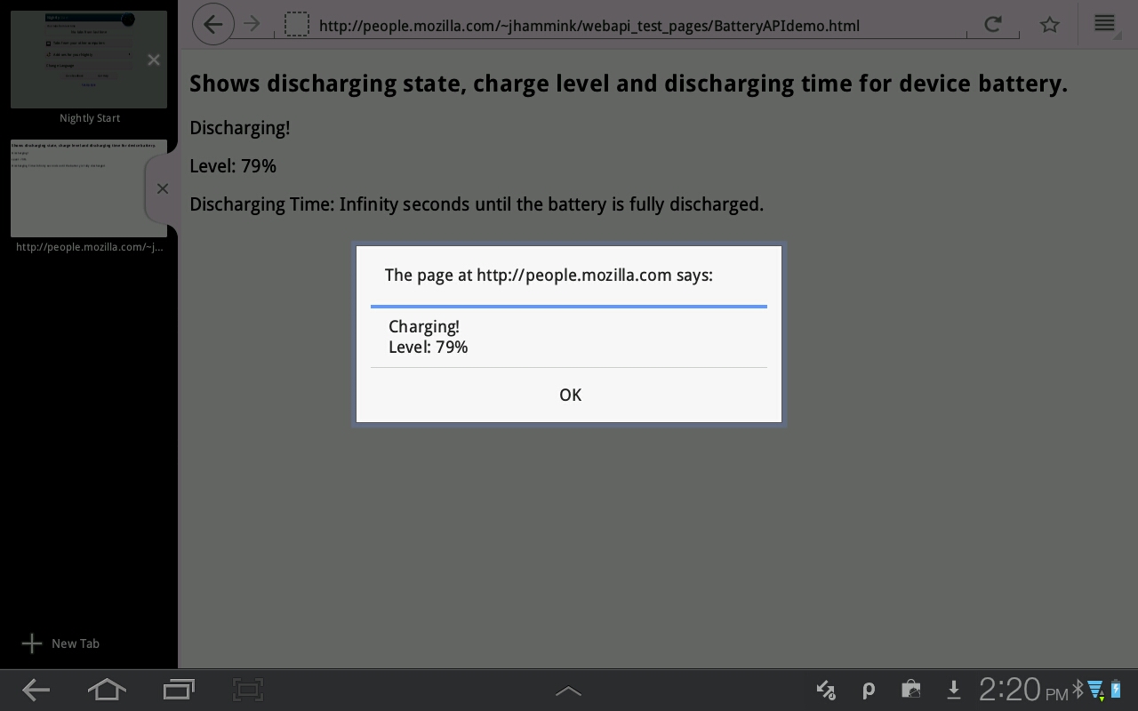 3) So the battery API is one of the first ones to land. Whilst interesting as an information piece on your phone, it is not quite that fascinating for developers. What uses cases can you think of? Maybe reading the battery before your massive WebGL animation and reading it afterwards?